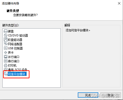 21、选择,可信平台模块。点击完成。
