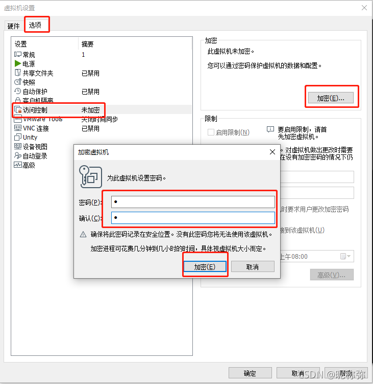 17、弹出的窗口,1、点击选项。2.点击访问控制。3。点击右侧的加密。4。在弹出的提示框设置密码。我设置的1。5。点击提示框的加密。