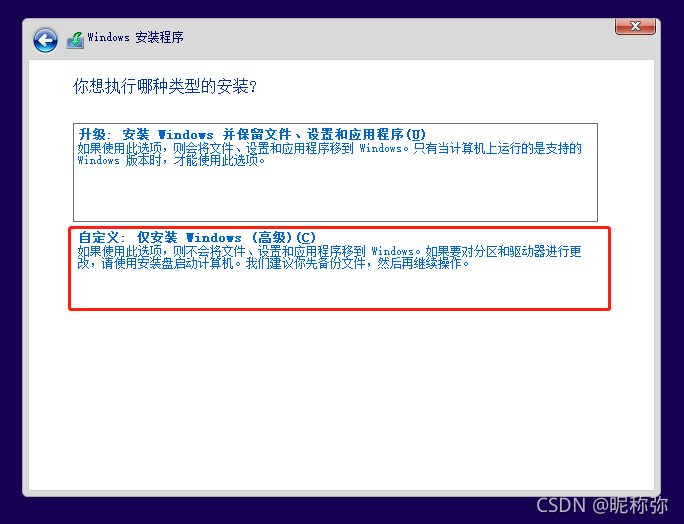 30、这里注意,要选择自定义。选择后,会直接跳到下一页中。