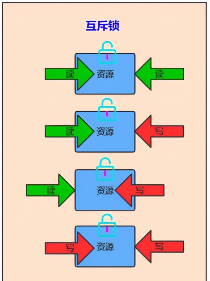 互斥锁与悲观锁、独占锁同义,表示某个资源只能被一个线程访问,其他线程不能访问。