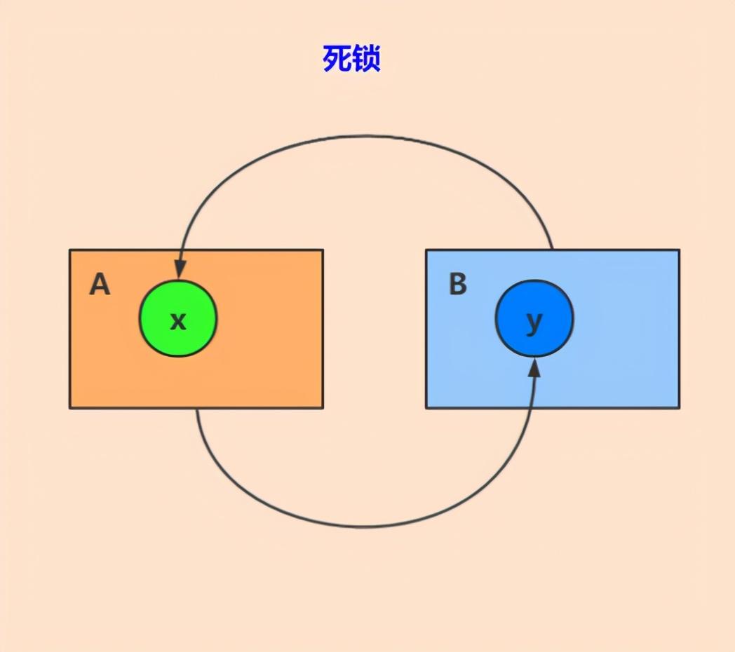 死锁是一种现象:如线程 A 持有资源 x,线程 B 持有资源 y,线程 A 等待线程 B 释放资源 y,线程 B 等待线程 A 释放资源 x,两个线程都不释放自己持有的资源,则两个线程都获取不到对方的资源,就会造成死锁。