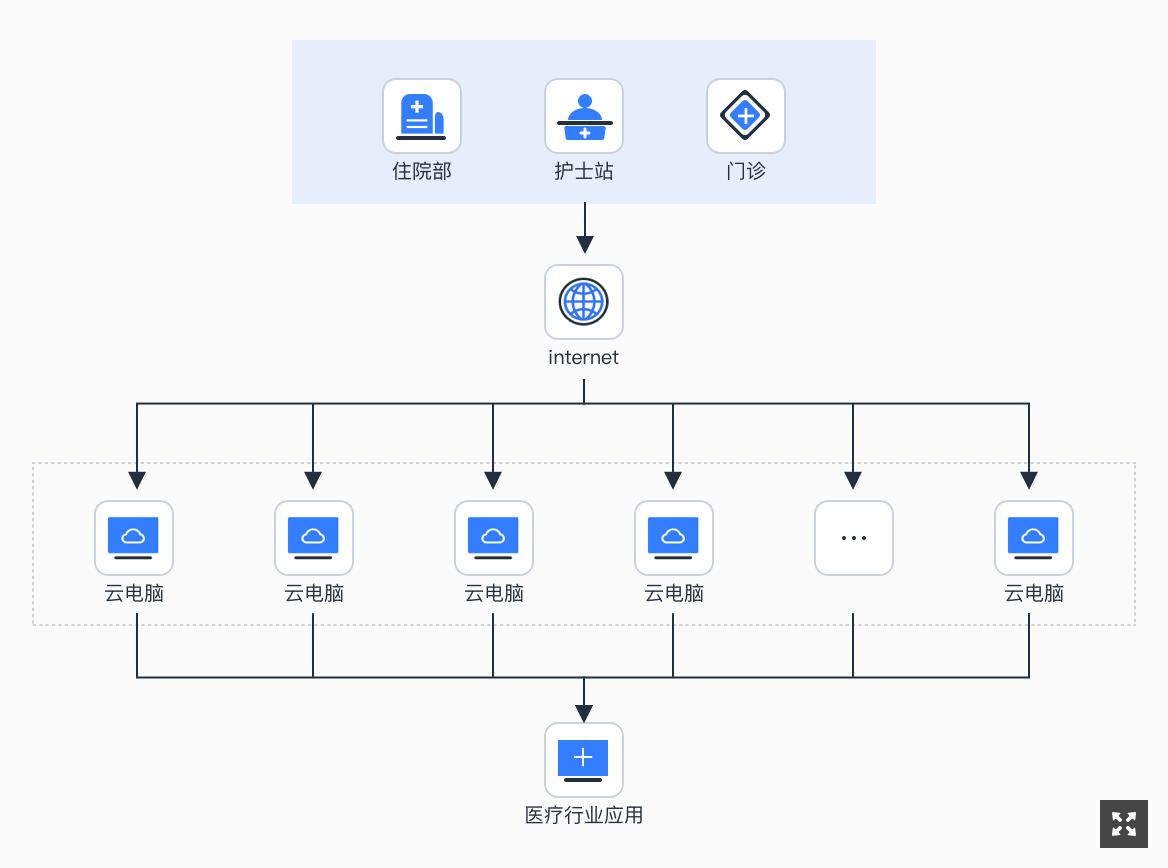 Hospitals need secure, high-performance desktops for electronic medical records (EMR), imaging analysis, and teleconsultations. - 技术优势 / Technical Advantage:4K流传输和GPU加速虚拟机(如NVIDIA vGPU)支持3D影像等计算密集任务。数据加密和HIPAA合规性保护患者数据。边缘节点支持农村诊所低延迟访问,应用生态支持EMR和PACS集成。