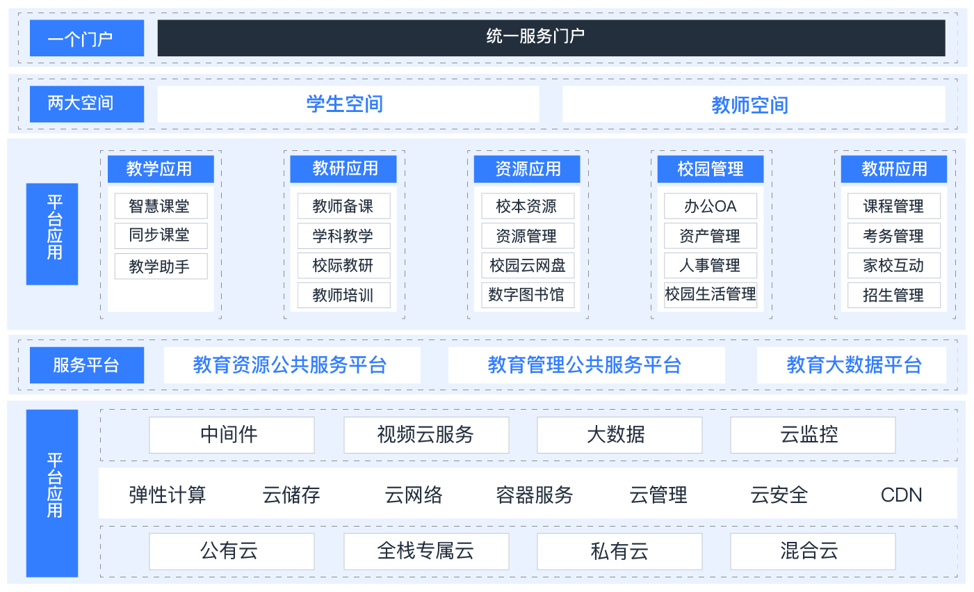 该架构为教育信息化提供了底层技术保障,适配多样化教学场景的技术需求,支撑教育资源普惠化与教学模式创新。