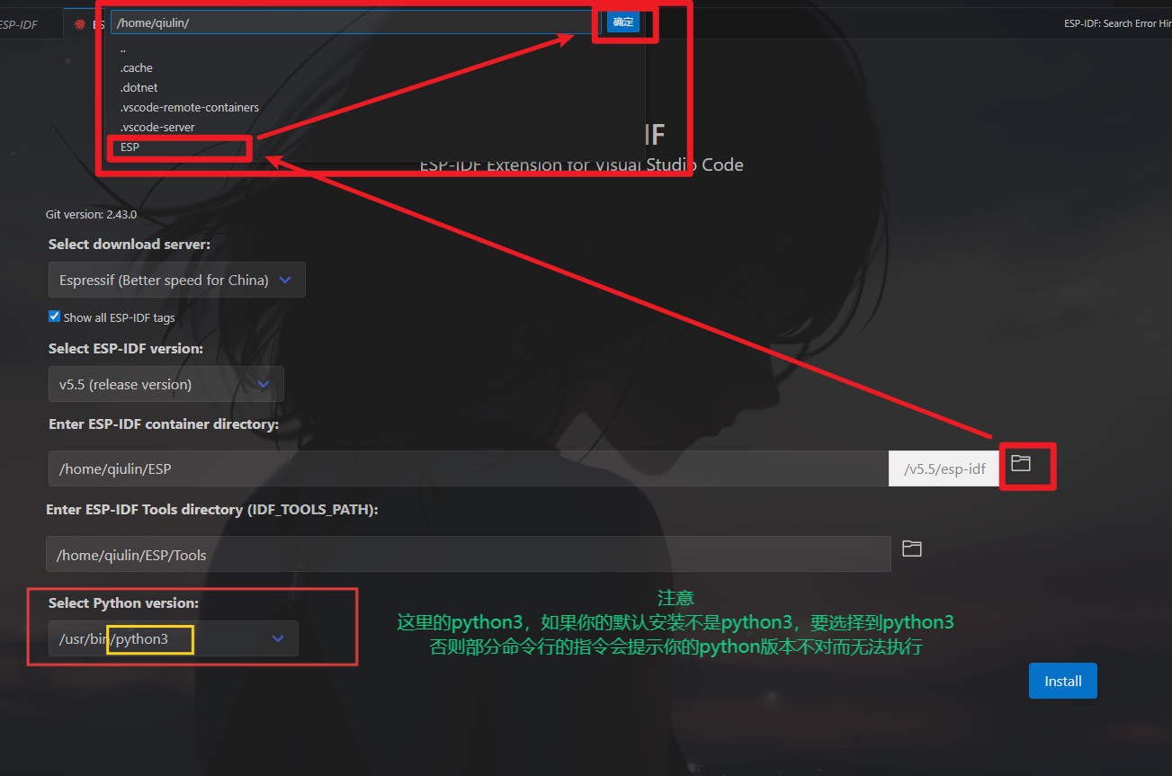 (5)安装espidf插件(之前安装的是在windows的,现在安装的是在Ubuntu的,也就是linux环境下)