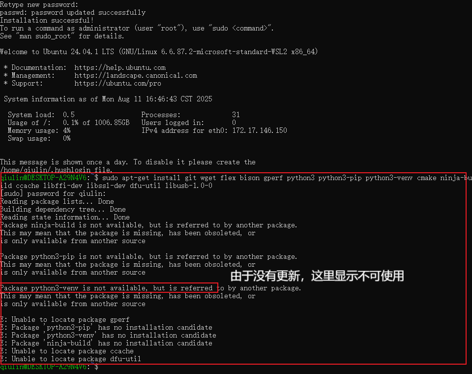 现在是完成了wsl的初始化配置,之后需要安装espidf的依赖库和工具。