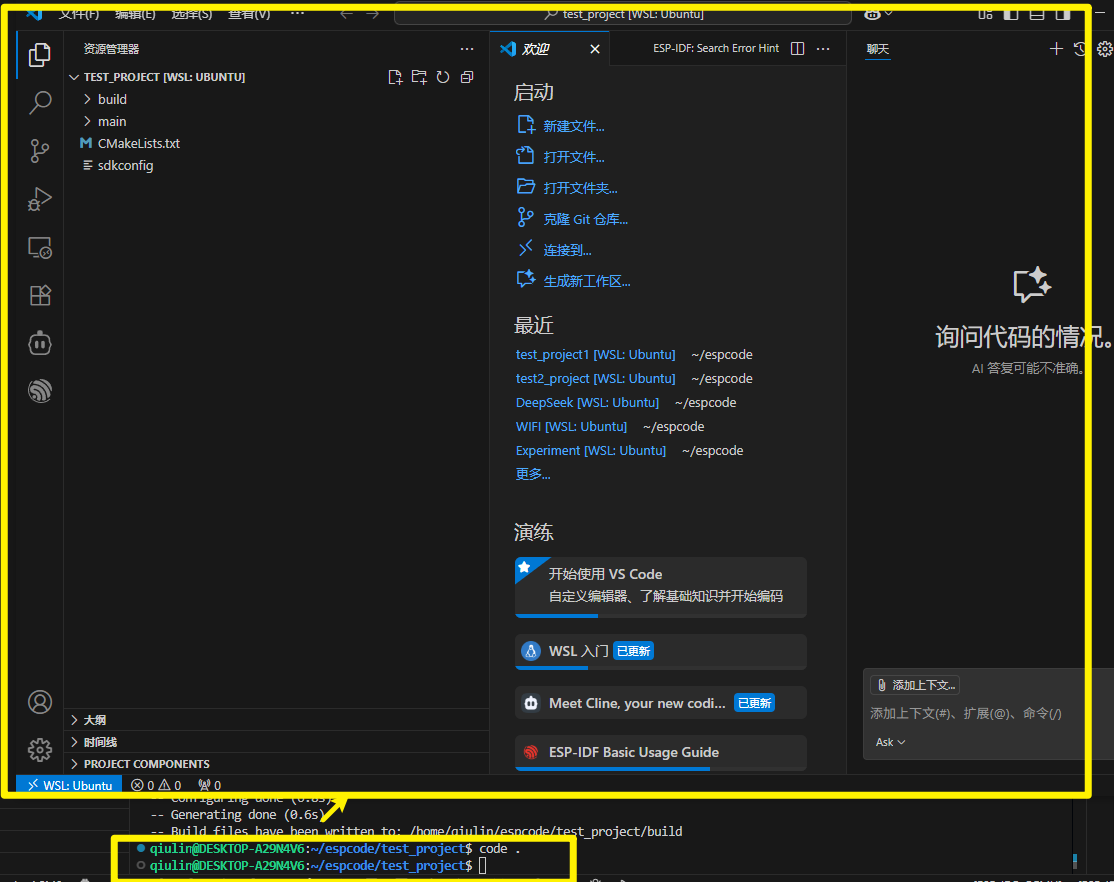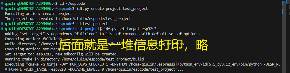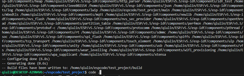 cd ~/espcode #进入保存工程文件夹的目录,我这里是espcode