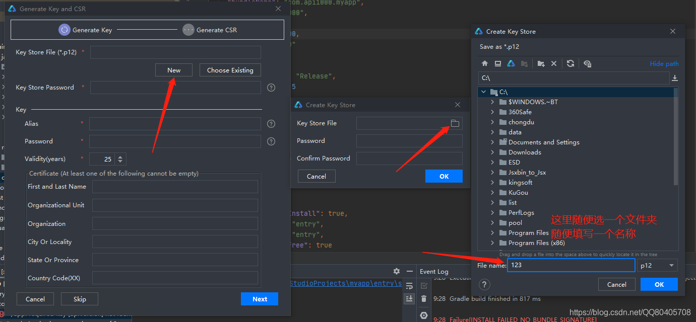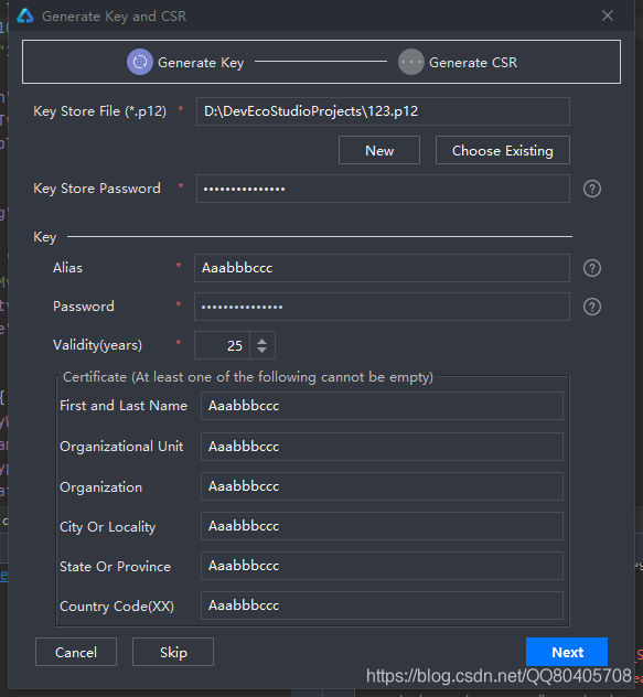 13,创建好之后KeyStorePassword可以使用一样的密码,其他文本框随便填
