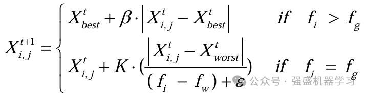 其中,其中Xbest是当前的全局最优位置。β作为步长控制参数,是服从均值为0,方差为1的正态分布的随机数。K∈[-1,1]是一个随机数,fi则是当前麻雀个体的适应度值。fg和fw分别是当前全局最佳和最差的适应度值。ε是最小的常数,以避免分母出现零。