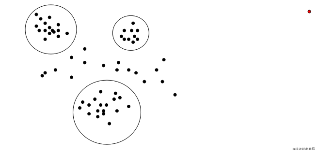 上面聚类技术让我们去将相似的用户聚类,物以类聚,人以群分。然而就是有一些用户“特立独行”,与其他用户天差地别,如下图所示的红点。我们把这个红点称为离群点。对于离群点研究研究也很多,比如信用卡诈骗,消费行为与大多数用户行为差别很大,这就是离群点,所以在一些风控中,离群点研究有很广泛的应用。