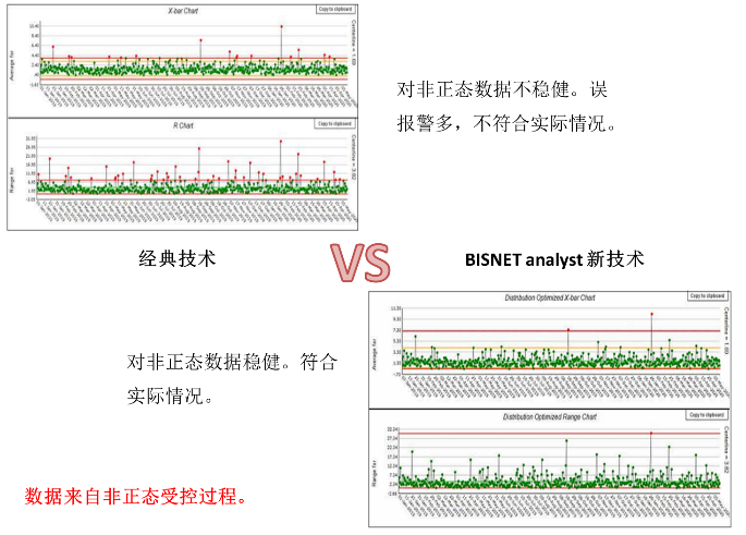 当数据不符合正态分布时,基于正态分布特性设计的控制限和判异准则就不能反应实际的小概率事件,导致误报警过多,从而做出错误决策。