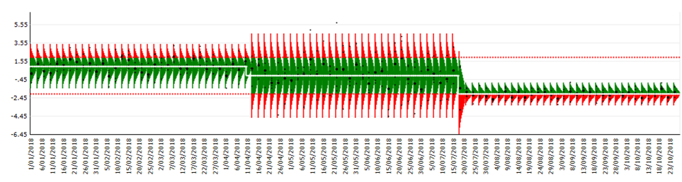 要清晰的看到均值及标准差变化的影响,系统采用了彩色的代码D(如下图所示)。不稳定的影响,即可清晰呈现。