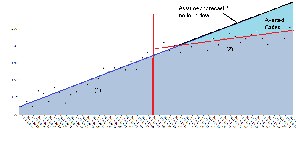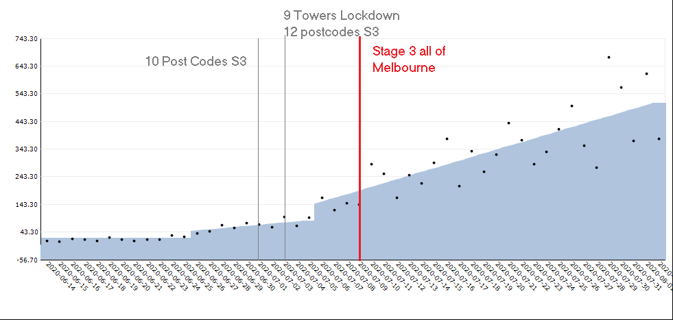 图6.0 6月14日至8月2日期间应用于维多利亚州病例的趋势识别技术