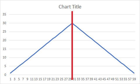 移动平均线总是滞后的。图7.16展示了在点30处发生变化的两条直线
