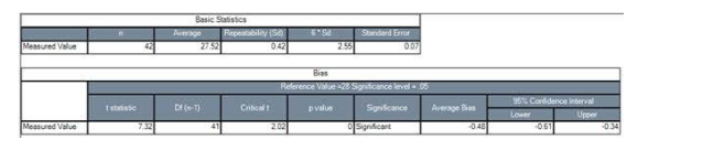 简单偏倚分析由同一个测试人员进行,至少采集10个样品。但是,如果重复性误差很高,这可能还不够。重要的是看置信区间,以确定估计的偏倚是否可靠。否则,则应使用BIS.Net样本量APP确定所需样本量,以获得指定的误差范围。