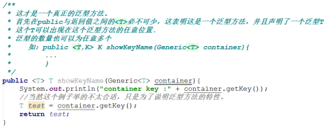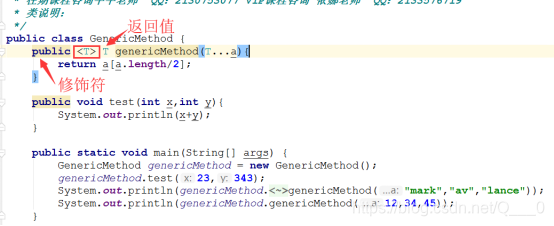 泛型方法,是在调用方法的时候指明泛型的具体类型 ,泛型方法可以在任何地方和任何场景中使用,包括普通类和泛型类。注意泛型类中定义的普通方法和泛型方法的区别。