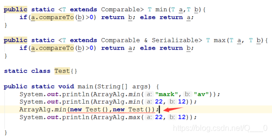 如果这个时候,我们试图传入一个没有实现接口Comparable的类的实例,将会发生编译错误。
