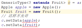 但是对泛型类GenericType来说,如果其中提供了get和set类型参数变量的方法的话,set方法是不允许被调用的,会出现编译错误