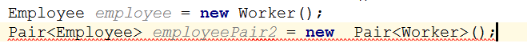 正是因为前面所述的,Pair<Employee>和Pair<Worker>没有任何关系,如果我们有一个泛型类和一个方法