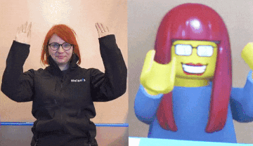 突然,你看见了屏幕上的自己,就像照镜子,但是照出来的是乐高小人。一模一样的发型,你笑它也对你笑。