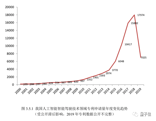可以看出,2018年,智能驾驶专利申请量达到了17974件,这个数字是2000年的116倍,可见增长十分迅猛。