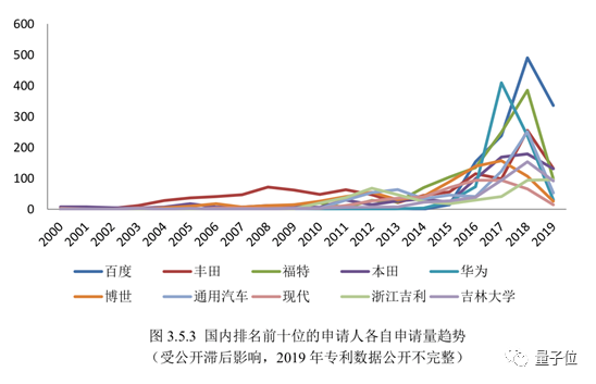 而如果看到这前十名玩家历年的申请数量图,会发现自动驾驶此前还是丰田、吉利、博世们的天下,自从2015年起,百度和华为才加入这一赛道,并且后来居上。