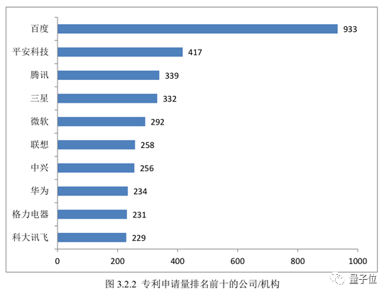 而且,第一名百度甩开第二名平安科技一倍的数量,达到933件,可以说是这一领域的专利霸主。