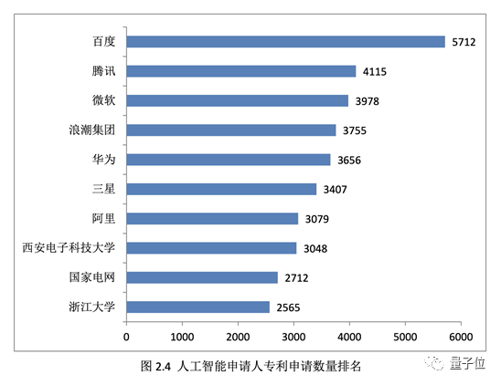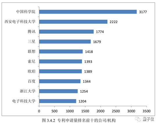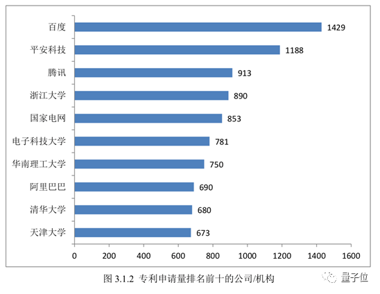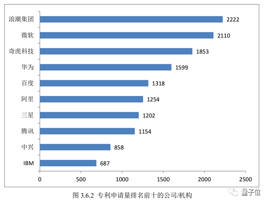 中国专利申请数最多的是百度,微软是外企第一,西安电子科技大学和浙大进入前十。