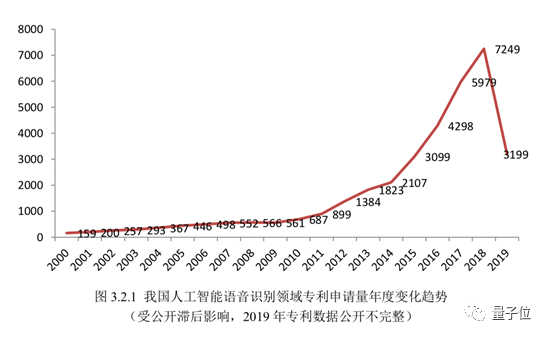 从2000年以来,中国人工智能领域的专利申请量总体上呈逐年上升趋势,且增长率不断提高。