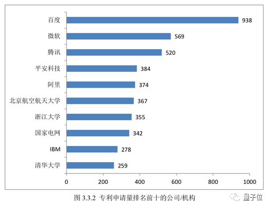 而具体到申请机构,百度依然保持第一,达到了938件,而且比第二名微软多300多件专利申请。
