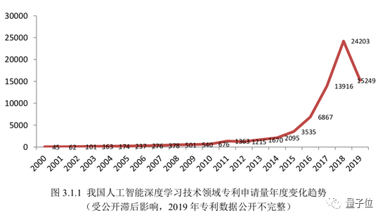 我国深度学习领域的专利申请量增长势头迅猛,2018年一整年的深度学习专利申请量达到24203件,是前一年的1.74倍。