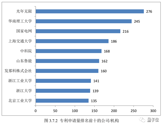 而智能机器人领域的专利申请数前十名榜单中,分别有6家科研院校和4家企业,前三名分别是光年无限(图灵机器人)、华南理工大学和国家电网。