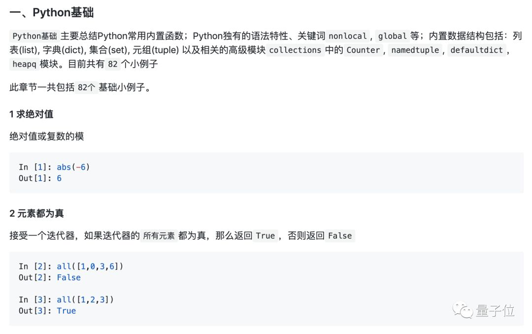 教程开篇,先用82段简单易懂的代码,介绍了Python的基础语法、功能。由简入繁,层层递进。