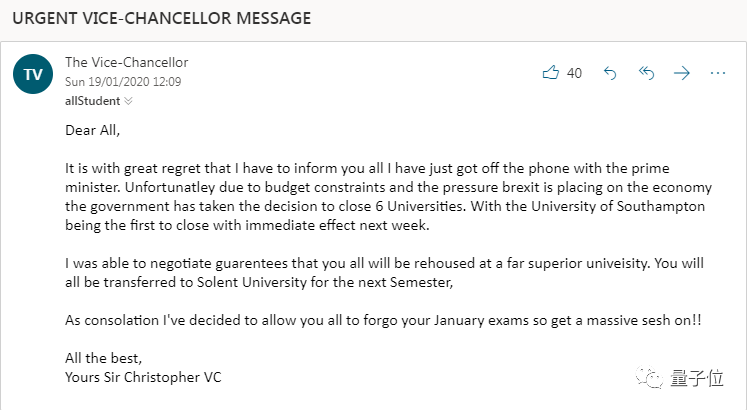 前两天,南安普顿大学(University of Southampton)3万多名学生们收到了一封来自副校长的邮件。
