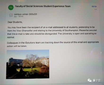 学校知道早些时候有封邮件群发给了学生,但这封邮件是假的。