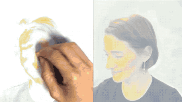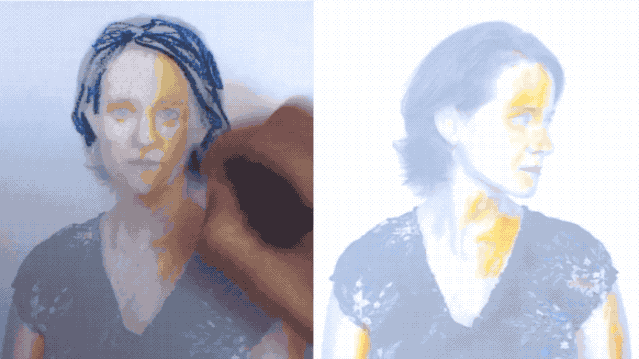 就像下面这张GIF,左边是张静态图片,随着画者一点一点为其勾勒色彩,右边的动图也在实时地变换颜色。