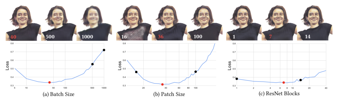 研究人员使用网格搜索法,对超参数的4维空间进行采样:Wp——训练图像块的大小;Nb——一个batch中块的数量;α——学习率;Nr——ResNet块的数量。