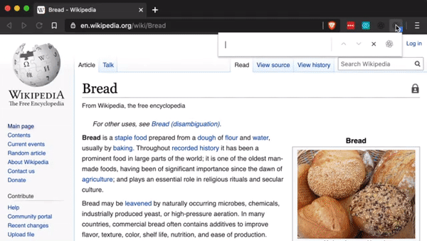 演示中在提问“面包为何如此蓬松”时,搜索会自动定向到维基百科词条相应位置。