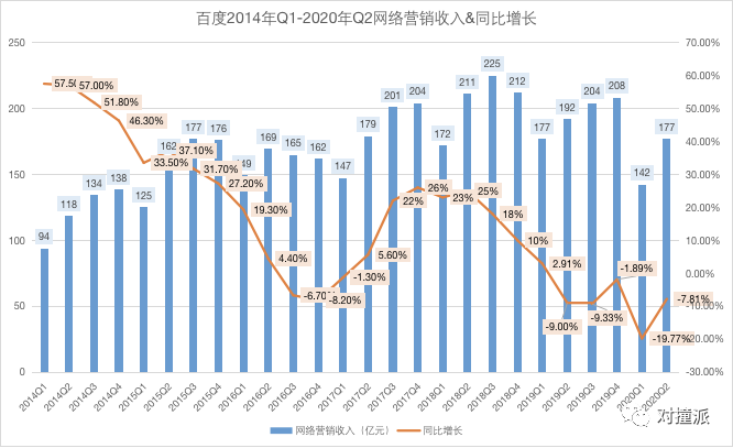 受到字节跳动冲击,百度这块业务的增长一直不太乐观,从2019年以来一直处于负增长状态。