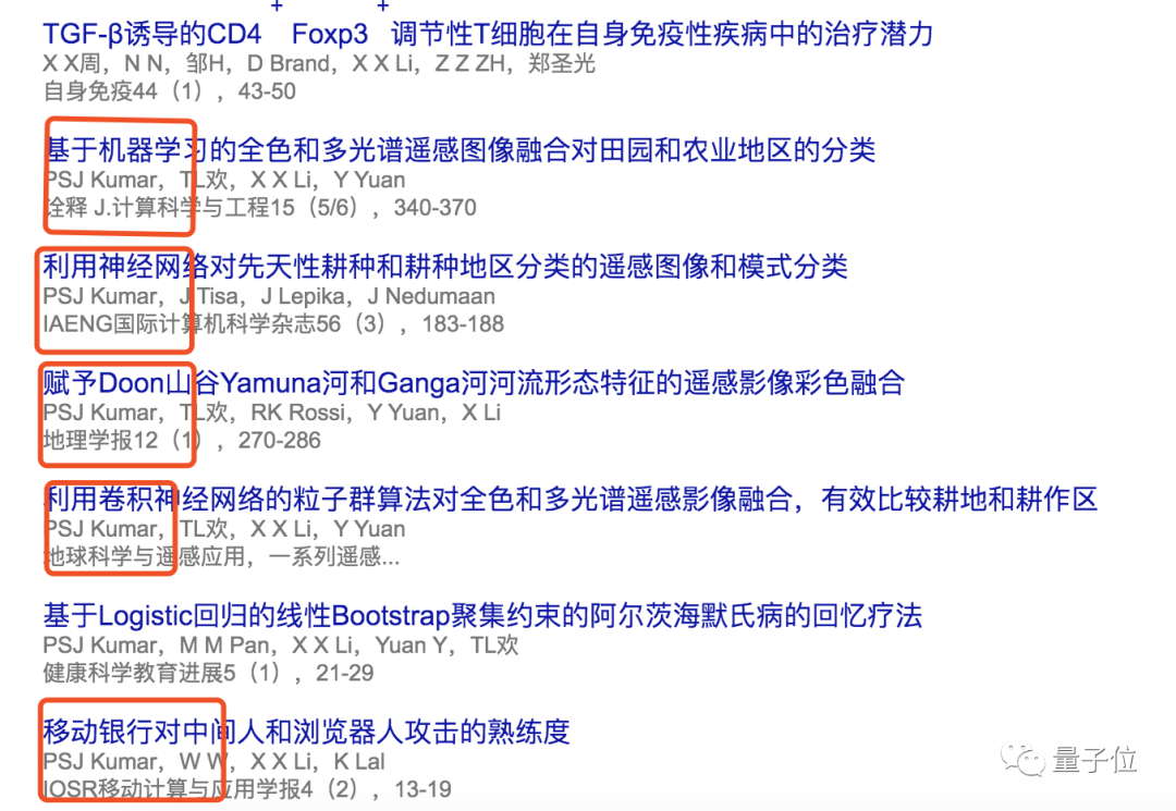 这导致被盗用名义的学者页面,收录了很多与其研究领域毫不相关的,并且是与Kumar合著的论文。