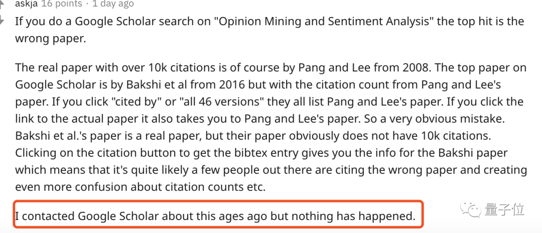 有Reddit网友说,其实谷歌学术页面造假并不是新鲜事,很久以前就向谷歌写邮件反应,但都石沉大海了。