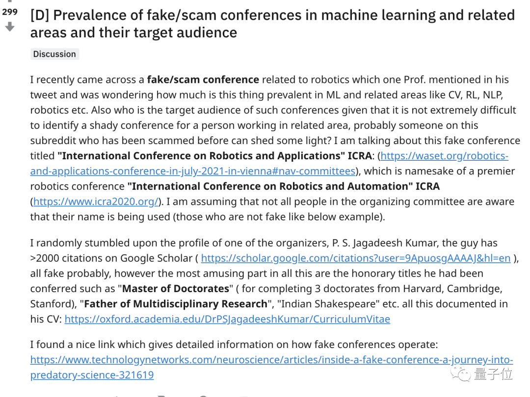 这个真假难辨的山寨机器人顶会在Reddit被曝光后,迅速引起了外国同行的关注。