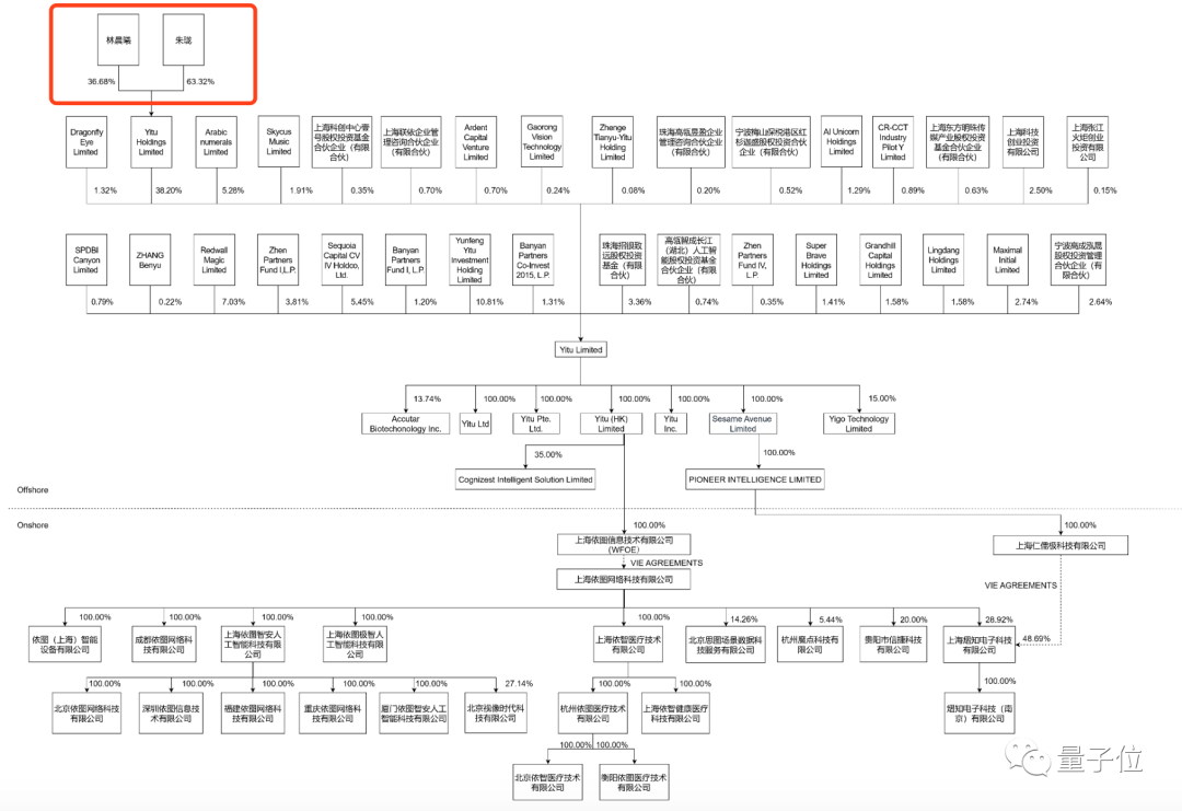 根据招股书内容,依图科技实际控制人是朱珑和林晨曦,通过Yitu Holdings平台实现控股。
