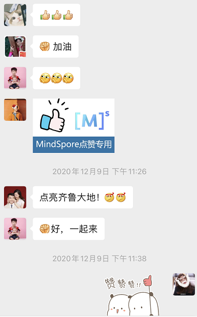 每天晚上20:00-22:00这个时间段,我们会组织线上会议,有嘉宾分享一些新奇的知识点,研发团队会为大家细心讲解与Bugfix有关的难点,还有模型大赛辅导人员在线为大家答疑解惑,参与的小伙伴也可以和大家分享心得,如果遗憾错过当天的会议也可以在b站MindSpore官方账号观看回放。