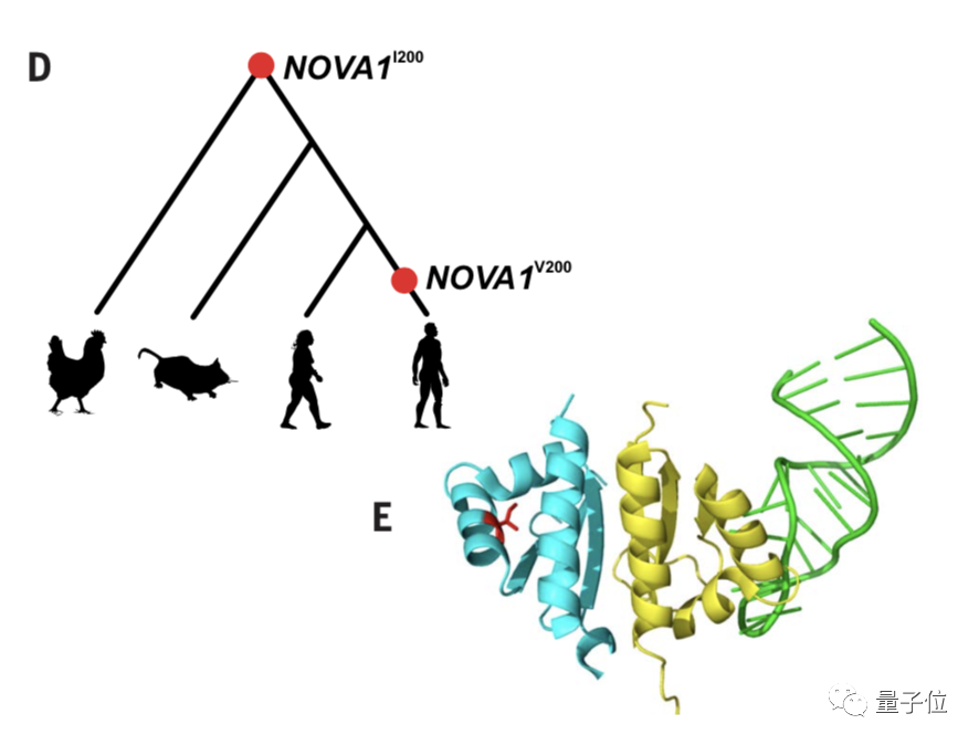 而人类的NOVA1基因与古老的变体(仍存在于其他灵长类动物中)的不同之处,是一个单一碱基。