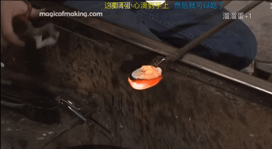 视频中,工人师傅需要将玻璃原料高温加热后,在其处于流体状态下快速塑形。