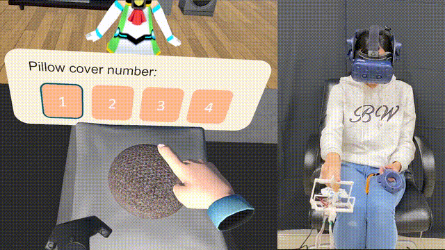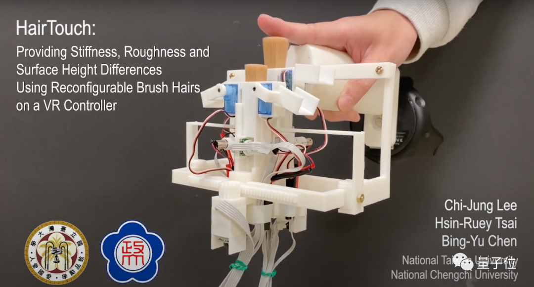 人们戴上VR眼镜后可以看到虚拟的猫咪,在伸手去抚摸时,装置中的毛发模拟器就会根据你看到的画面,来模拟相应的毛发情况。