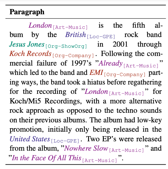 比如上述“London is the fifth album by the British rock band…”这句话中的实体“London”,就被准确标注成了“Art-Music”。
