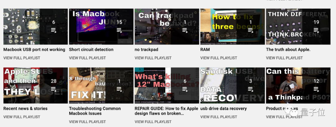 他发布的视频也十分硬核,基本上涉及MacBook遇到的常见问题,就像短路检测、USB端口、硬盘数据恢复之类的。