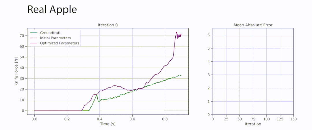 值得一提的是,利用DiSECt可微分的特性,研究人员还实现了刀的运动轨迹优化。也就是说,能帮机器人找到最省力的切菜方式。