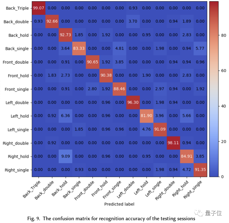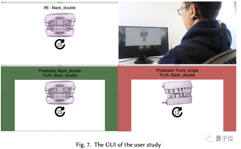 而在最终的用户测试阶段里,TeethTap成功识别了11位参与者的1382个牙齿动作中的1256个,平均准确度达90.9%。